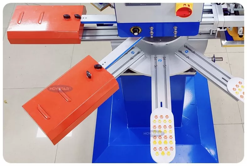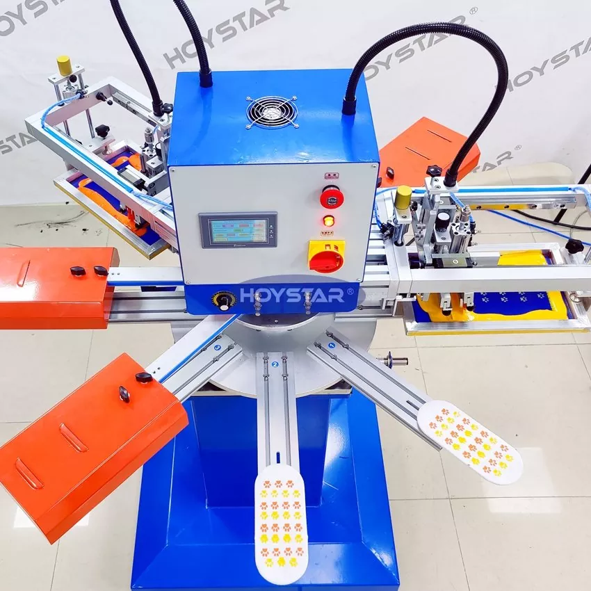 ప్రొఫెషనల్ తయారీదారు మరియు సరఫరాదారుగా, HOYSTAR హై ర్యాపిడ్ 2 కలర్స్ సాక్స్ స్క్రీన్ ప్రింటింగ్ మెషిన్ టెక్స్టైల్ అల్లడం పరిశ్రమలోని అప్లికేషన్ల కోసం రూపొందించబడింది. 1000PCS/Hr వేగంతో, ఇది నాన్-స్లిప్ సాక్స్, బేబీ సాక్స్, అడల్ట్ సాక్స్, సాకర్ సాక్స్ మొదలైన వాటిని ప్రింటింగ్ చేయడానికి అనుకూలంగా ఉంటుంది. రోటరీ వర్క్ టేబుల్తో అమర్చబడి, సాక్స్లను లోడ్ చేయడానికి మరియు అన్లోడ్ చేయడానికి చాలా సౌకర్యవంతంగా ఉంటుంది. PLC టచ్ స్క్రీన్ నియంత్రణ, ఆపరేట్ చేయడం చాలా సులభం. డ్రైయింగ్ సిస్టమ్తో కూడిన యంత్రం సిలికాన్ మరియు సిరాను బాగా ఆరబెట్టగలదు.
