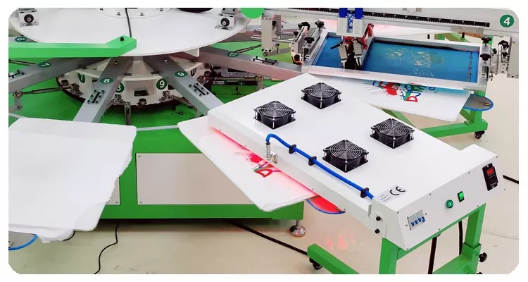 అవసరమైన విధంగా ఏదైనా ప్రింట్ స్టేషన్ల లోపల కదిలే డ్రైయర్ను ఉంచవచ్చు