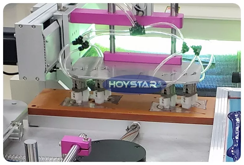 చైనాలో ప్రొఫెషనల్ తయారీదారుగా, HOYSTAR పాలకుల కోసం ఆటోమేటిక్ స్క్రీన్ ప్రింటింగ్ మెషీన్ను సరఫరా చేస్తుంది. హై స్పీడ్ రోటరీ వర్క్టేబుల్తో కూడిన మెషిన్, ఎలాంటి వైబ్రేషన్లు లేకుండా అధిక వేగంతో పనిచేయగలదు. ప్రింటింగ్ స్వయంచాలకంగా పూర్తి చేయడానికి, శ్రమను తగ్గించడానికి, సామర్థ్యాన్ని మెరుగుపరచడానికి అధిక ఖచ్చితత్వ సర్వో మోటార్ మరియు క్యామ్ డివైడర్ ద్వారా ప్రింటింగ్ మరియు కన్వేయింగ్ సిస్టమ్. ఈ యంత్రం యొక్క గరిష్ట ముద్రణ వేగం 2500PCS/Hr నుండి 5000PCS/Hr వరకు ఉంటుంది. ఇది ప్రధానంగా రూలర్లు, ఈక్విలేటరల్ ట్రయాంగిల్ రూలర్లు, డెల్టా రూలర్లు మరియు ప్రొట్రాక్టర్ల వంటి స్టేషనరీ ఉత్పత్తుల యొక్క పెద్ద-పరిమాణ ముద్రణకు వర్తిస్తుంది.