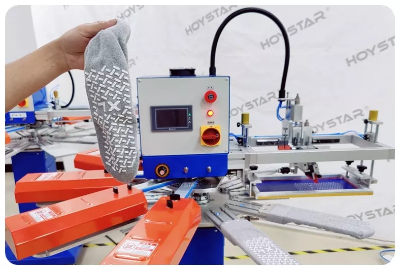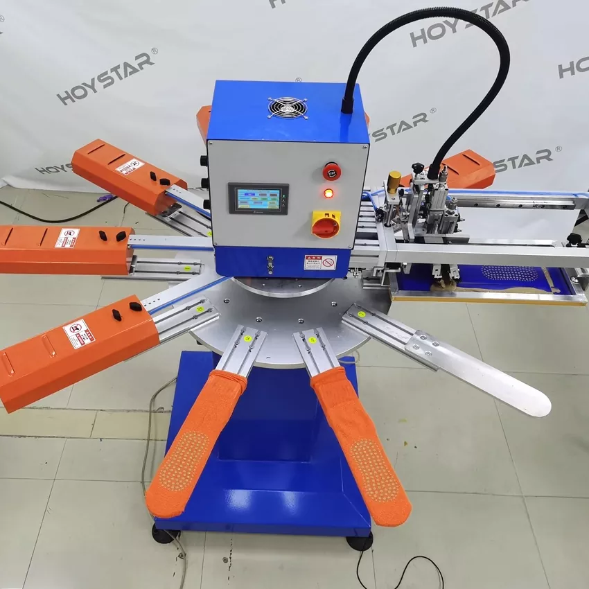 ప్రొఫెషనల్ తయారీదారు మరియు సరఫరాదారుగా, సాక్స్ కోసం HOYSTAR హై ర్యాపిడ్ స్క్రీన్ ప్రింటింగ్ మెషిన్ టెక్స్టైల్ అల్లడం పరిశ్రమలోని అనువర్తనాల కోసం రూపొందించబడింది. 1000PCS/Hr వేగంతో, ఇది నాన్-స్లిప్ సాక్స్, బేబీ సాక్స్, అడల్ట్ సాక్స్, సాకర్ సాక్స్ మొదలైన వాటిని ప్రింటింగ్ చేయడానికి అనుకూలంగా ఉంటుంది. రోటరీ వర్క్ టేబుల్తో అమర్చబడి, సాక్స్లను లోడ్ చేయడానికి మరియు అన్లోడ్ చేయడానికి చాలా సౌకర్యవంతంగా ఉంటుంది. PLC టచ్ స్క్రీన్ నియంత్రణ, ఆపరేట్ చేయడం చాలా సులభం. డ్రైయింగ్ సిస్టమ్తో కూడిన యంత్రం సిలికాన్ మరియు సిరాను బాగా ఆరబెట్టగలదు.