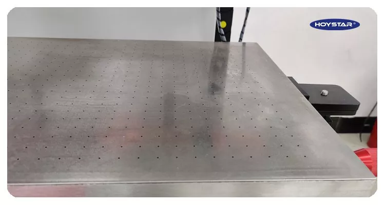 12. ఖచ్చితమైన నమోదు కోసం సమానంగా పంపిణీ చేయబడిన చూషణ రంధ్రాలు మరియు బలమైన వాక్యూమ్ శోషణతో అధిక-బలం వర్క్టేబుల్.